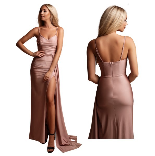 Galajurk oud-rose strapless (optie schouderbanden) strech-stof (elastisch)HM2395