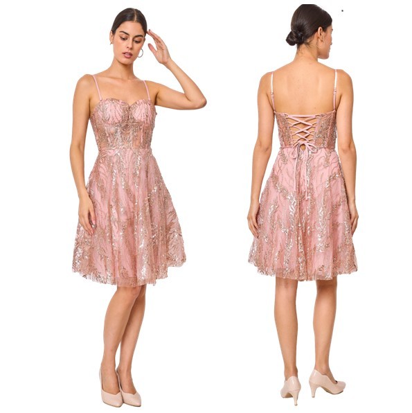 Cocktailjurk oud-rose strapless (optie schouderbanden) glitter-stofHM2399