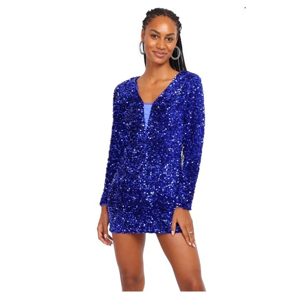 Cocktailjurk koningsblauw lange mouwen glitter-stofH1257