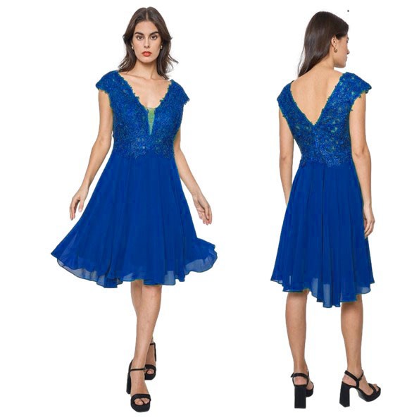 Cocktailjurk koningsblauw schouderbanden chiffon9409