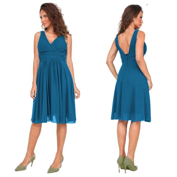Cocktailjurk petrol schouderbanden chiffon8827-1B