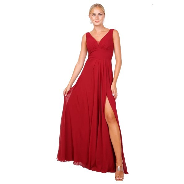 Galajurk bordeaux-rood schouderbanden-split chiffonD6088