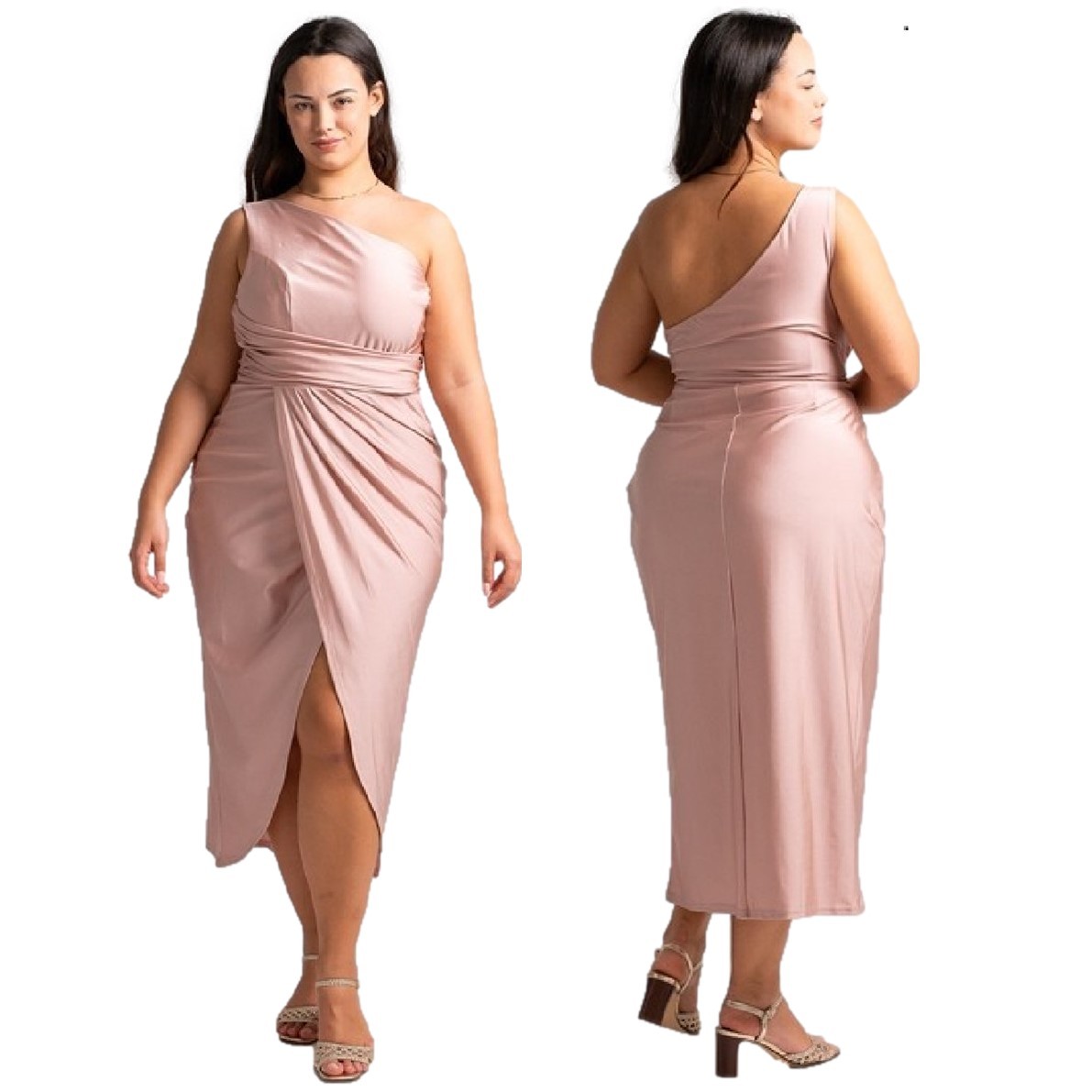 Cocktailjurk oud-rose één schouderband-split strech-stof (elastisch)HM2421QS