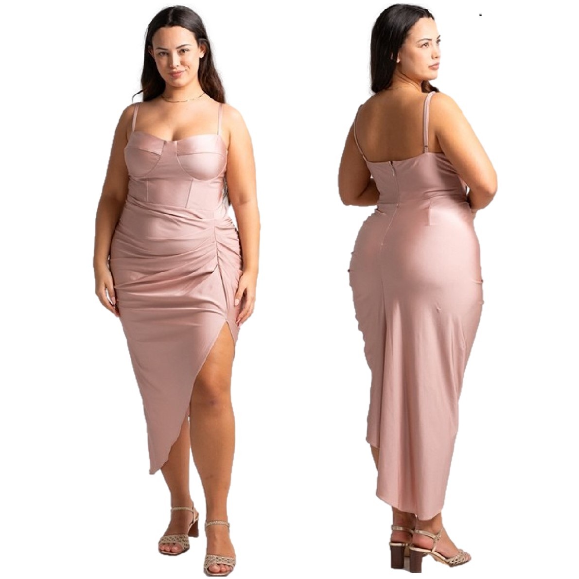 Cocktailjurk oud-rose één schouderband-split strech-stof (elastisch)HM2423QS