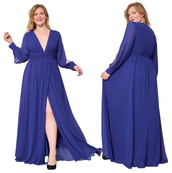 Galajurk koningsblauw lange mouwen-split chiffonHM2378QS