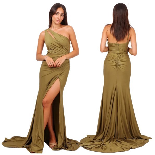 Galajurk kaki één schouderband-split strech-stof (elastisch)H2121