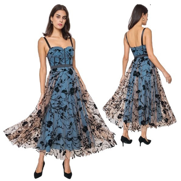 Cocktailjurk petrol -zwart schouderbanden tuleHM2325