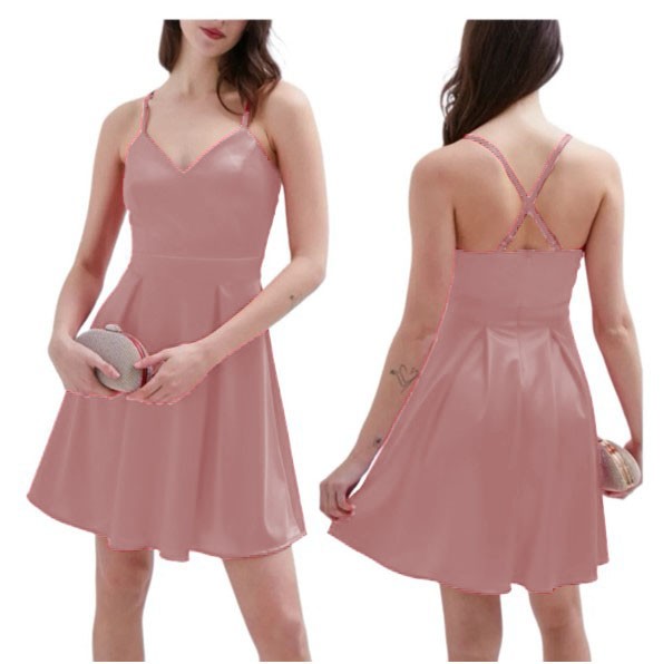 Cocktailjurk oud-rose schouderbanden strech-stof (elastisch)5542