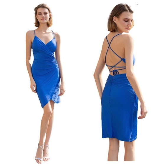 Cocktailjurk koningsblauw lage rug strech-stof (elastisch)H2132