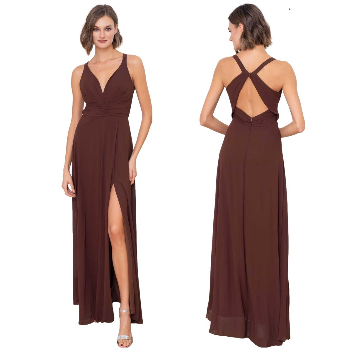 Galajurk bruin lage rug-split chiffon8971