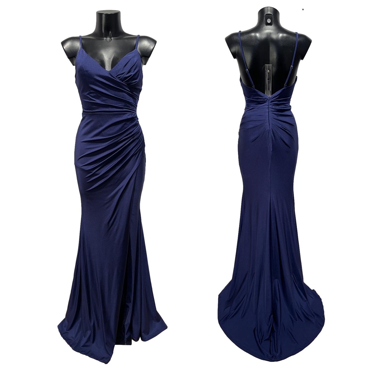 Galajurk marine-blauw lage rug-split strech-stof (elastisch)H2135-1