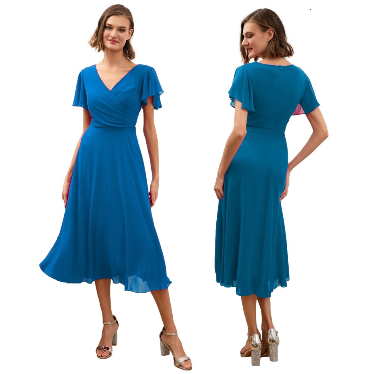 Galajurk petrol 3/4 lengte-korte mouwen chiffon5025