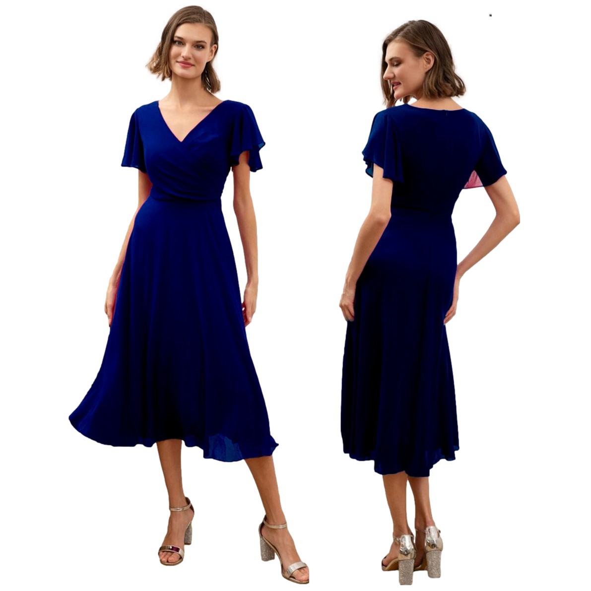 Galajurk marine-blauw 3/4 lengte-korte mouwen chiffon5025