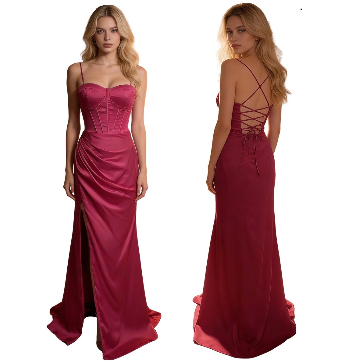 Galajurk fuchsia split glans-satijn80516-A