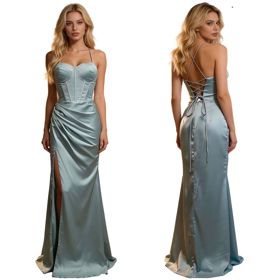 Galajurk sage green split glans-satijn80516-A