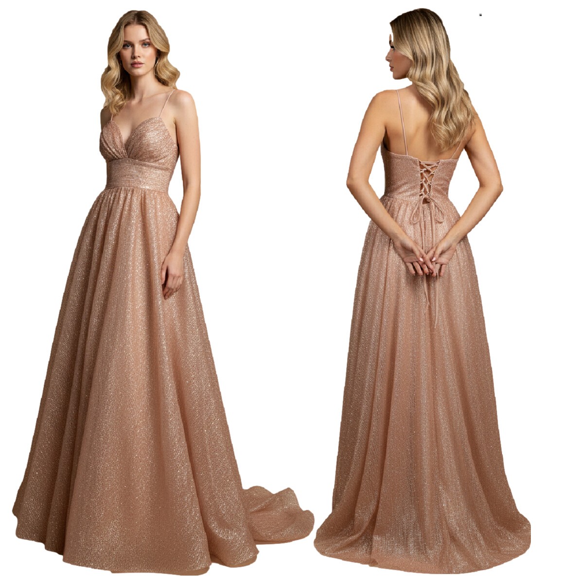 Galajurk oud-rose schouderbanden glitter-stof-tuleHM2430