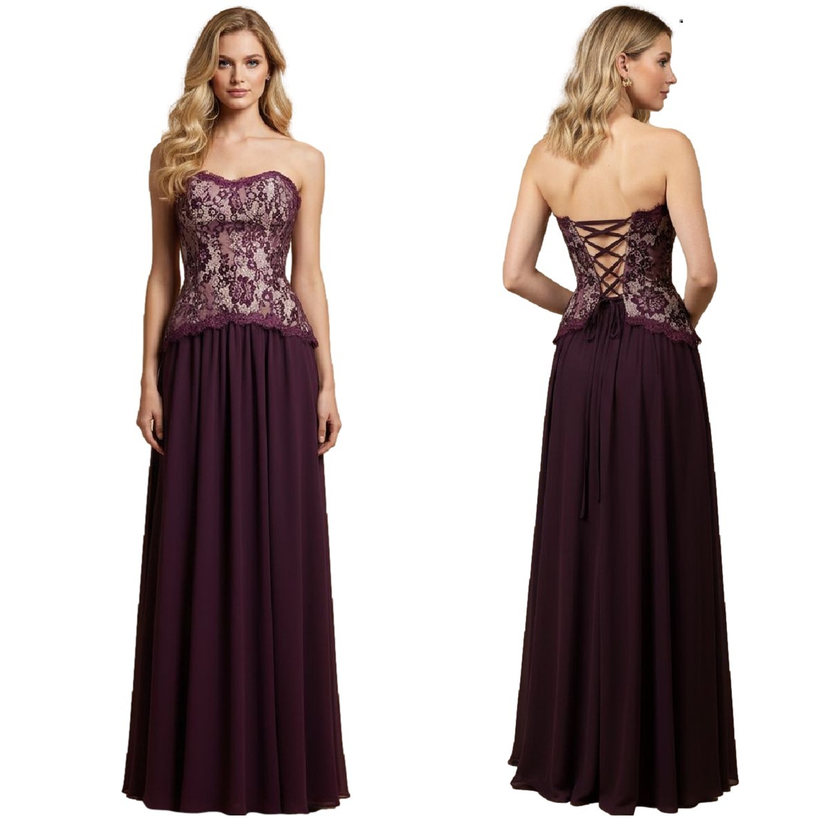 Galajurk paars strapless chiffon-kantHM2516