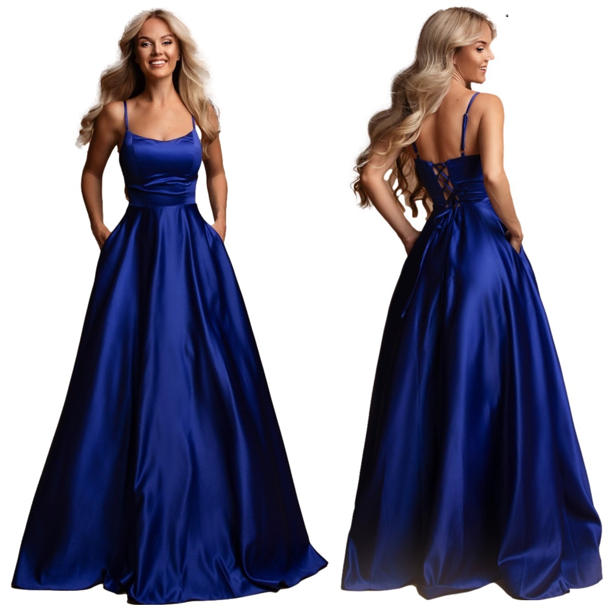 Galajurk koningsblauw schouderbanden glans-satijnHM2455