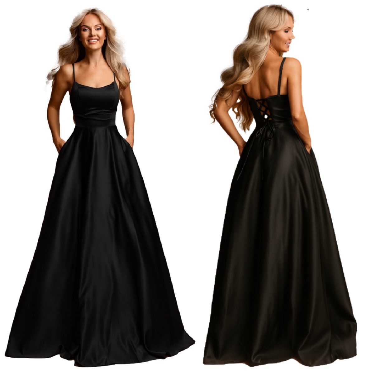 Galajurk zwart schouderbanden glans-satijnHM2455