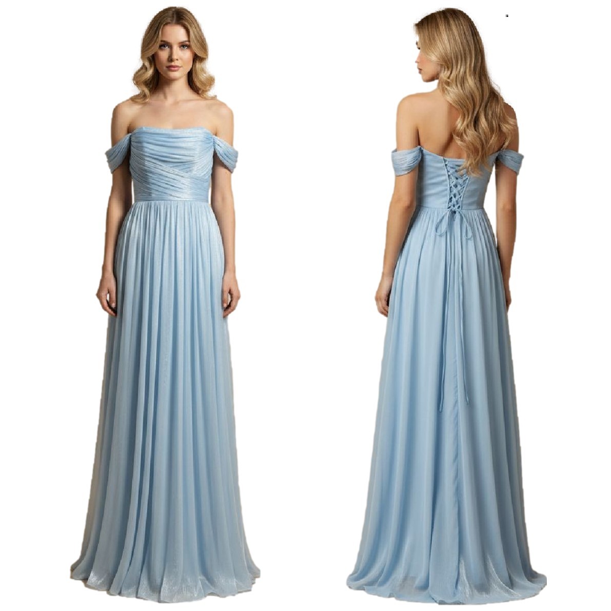 Galajurk ice blue boothals-kap-mouwen glans-satijnHM2533