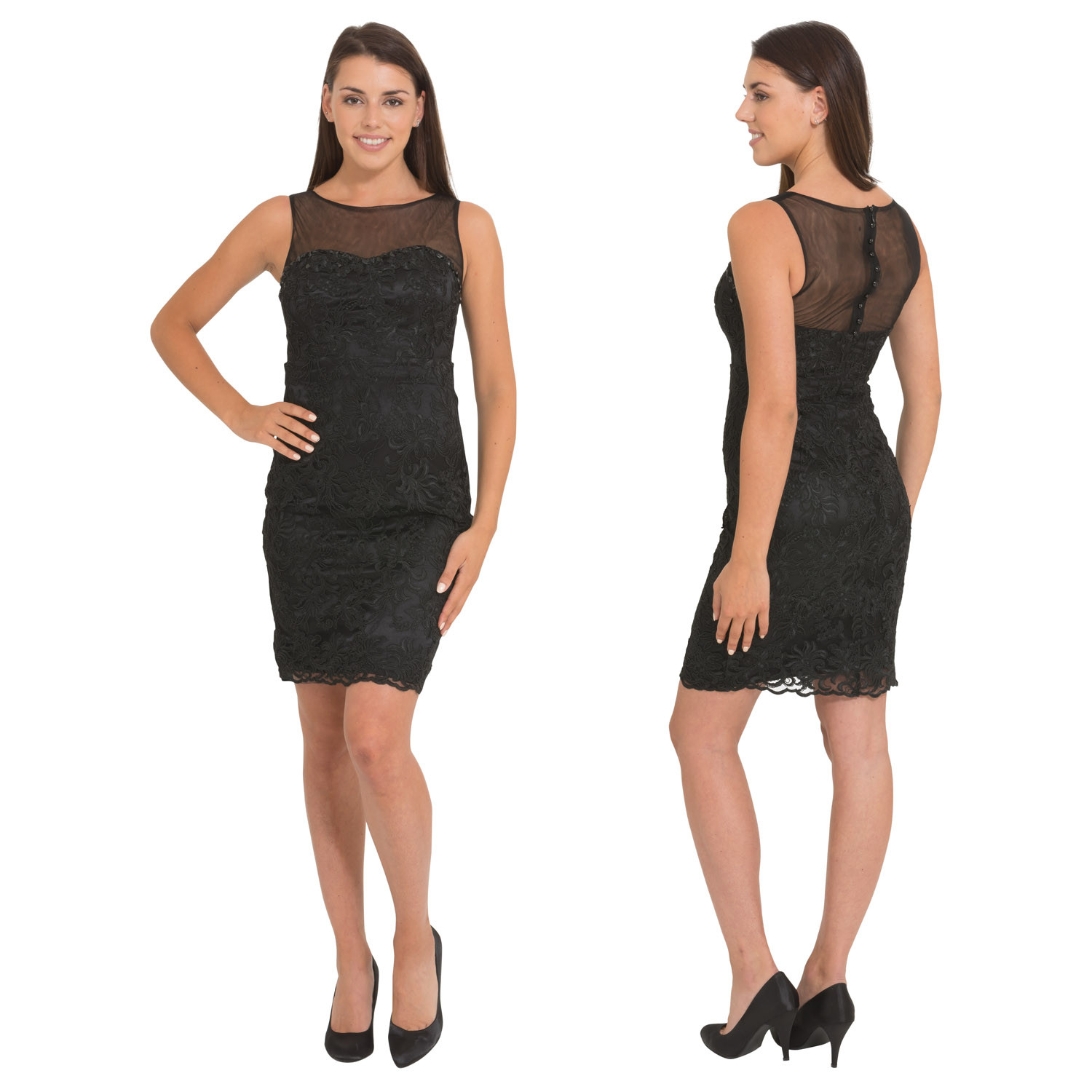 Cocktailjurk zwart schouderbanden kantR8019