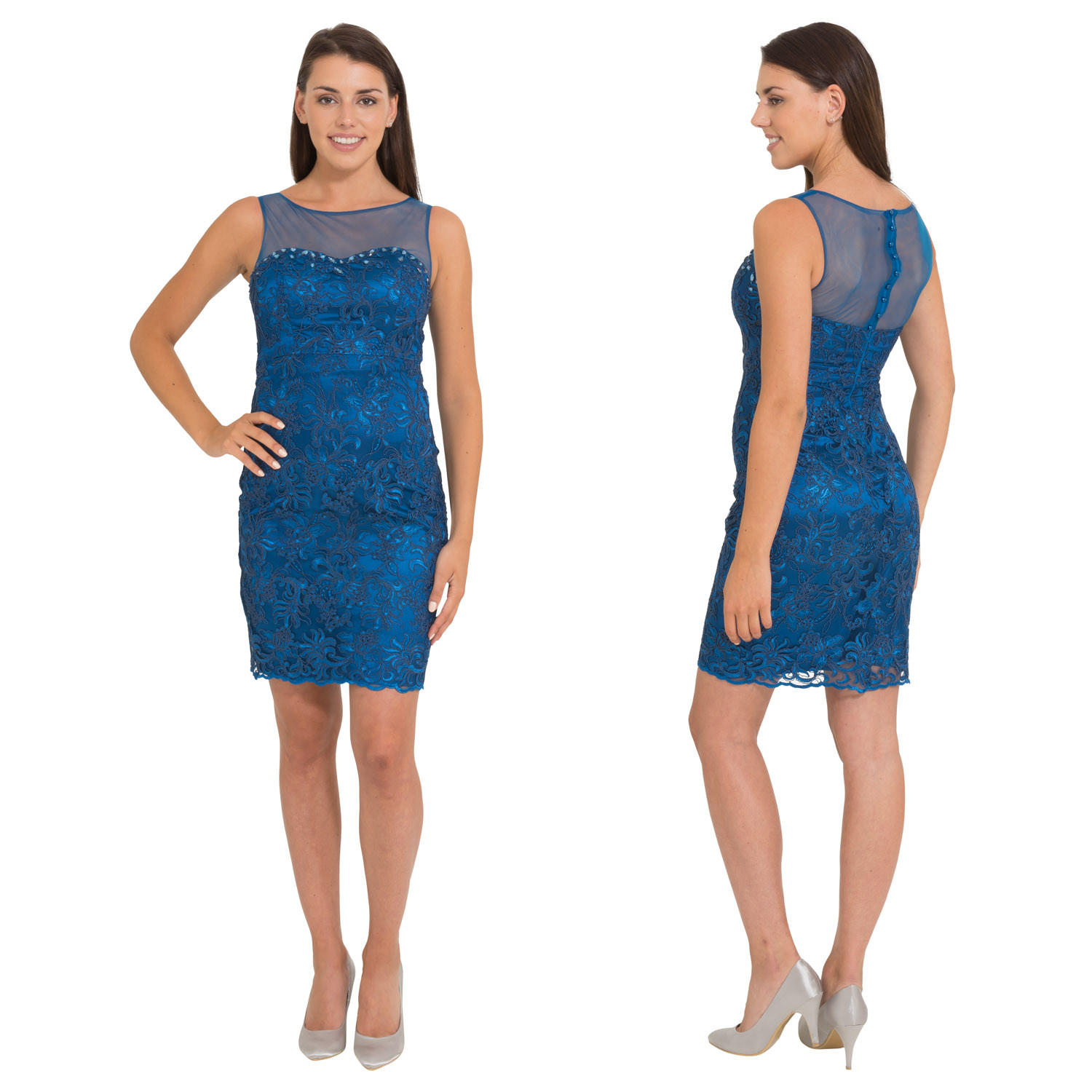Cocktailjurk koningsblauw schouderbanden kantR8019