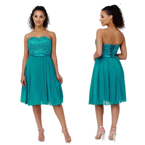 Cocktailjurk petrol strapless (optie schouderbanden) chiffon1532